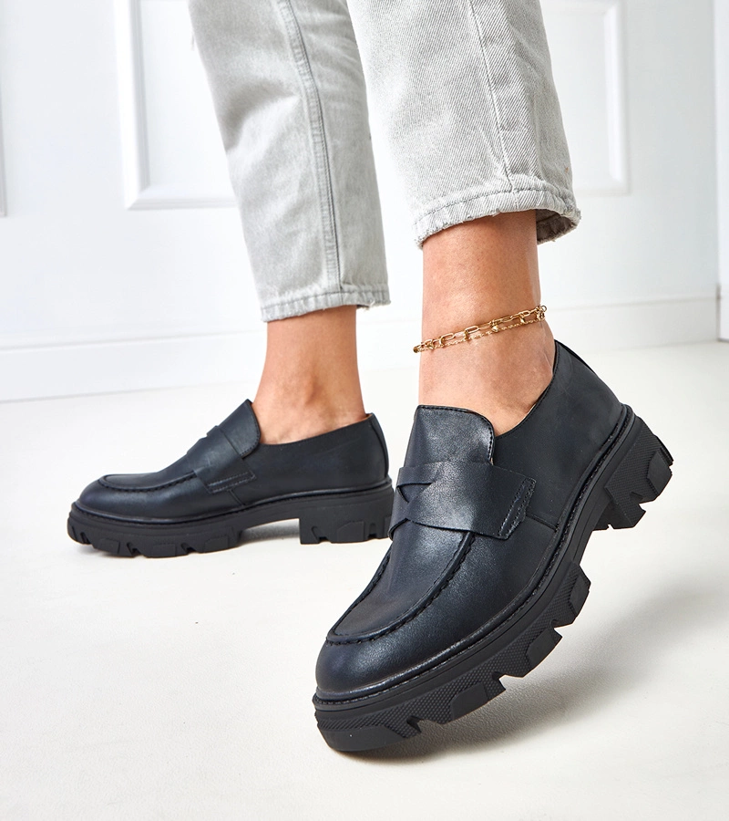 Czarne pantofle se zlatou ozdobou na pásku Elerat