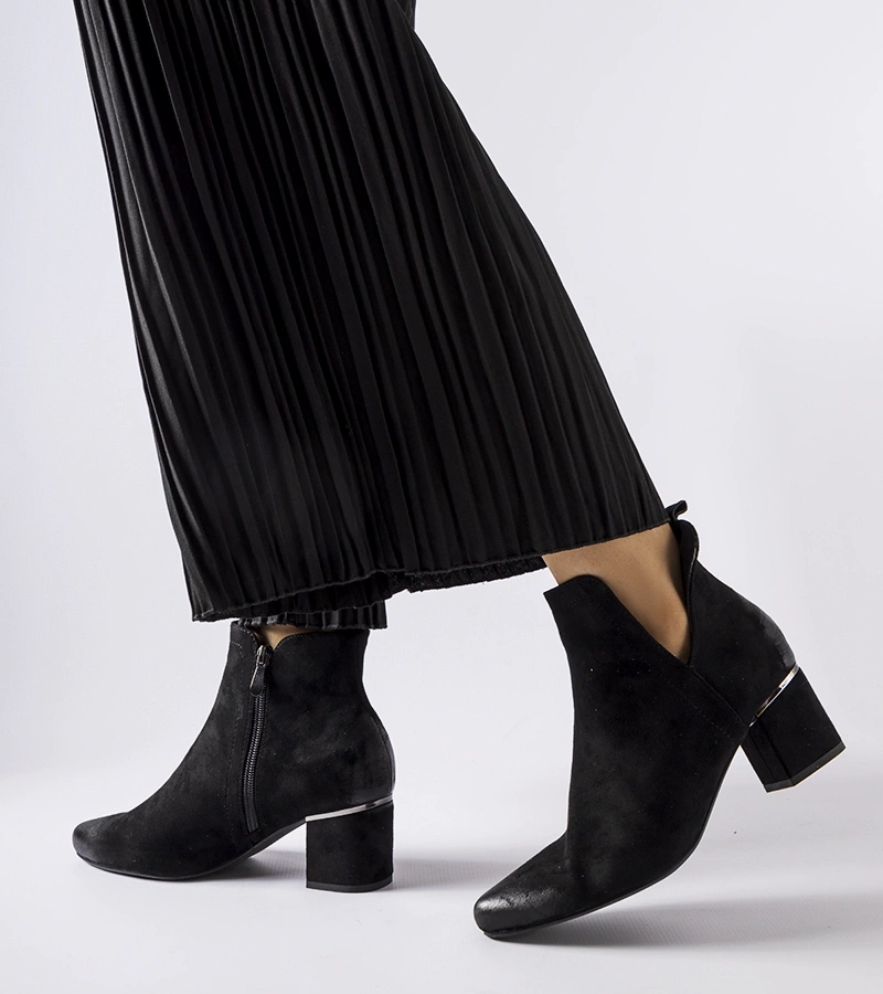 Černé vypolstrované kotníkové boty na podpatku Vinceza