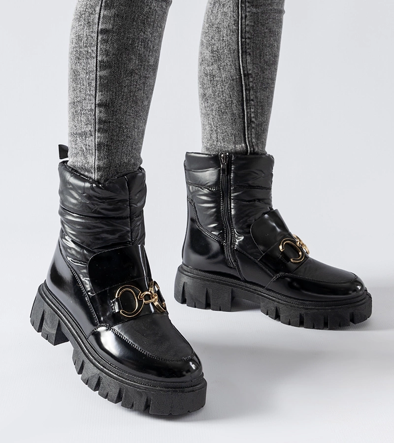 Černé zateplené kotníkové botky se řetízkem Smithsons