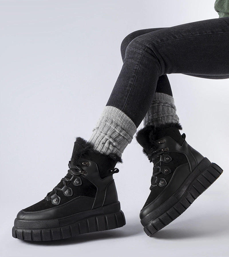 Černé sněhule s ozdobným kožešinkem Igne