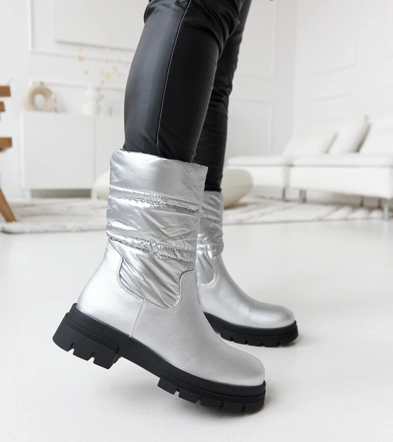 Stříbrné vyztužené zimní botky s prošívaným vzorem Malvaro