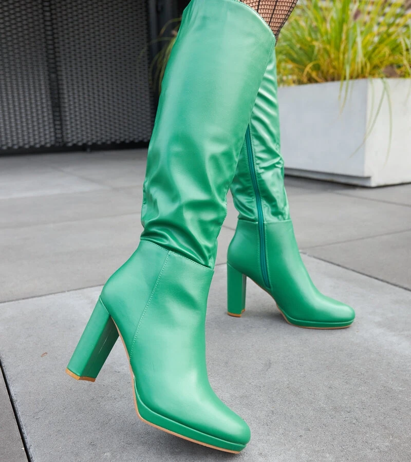 Zelené kozačky na podpatku Strother